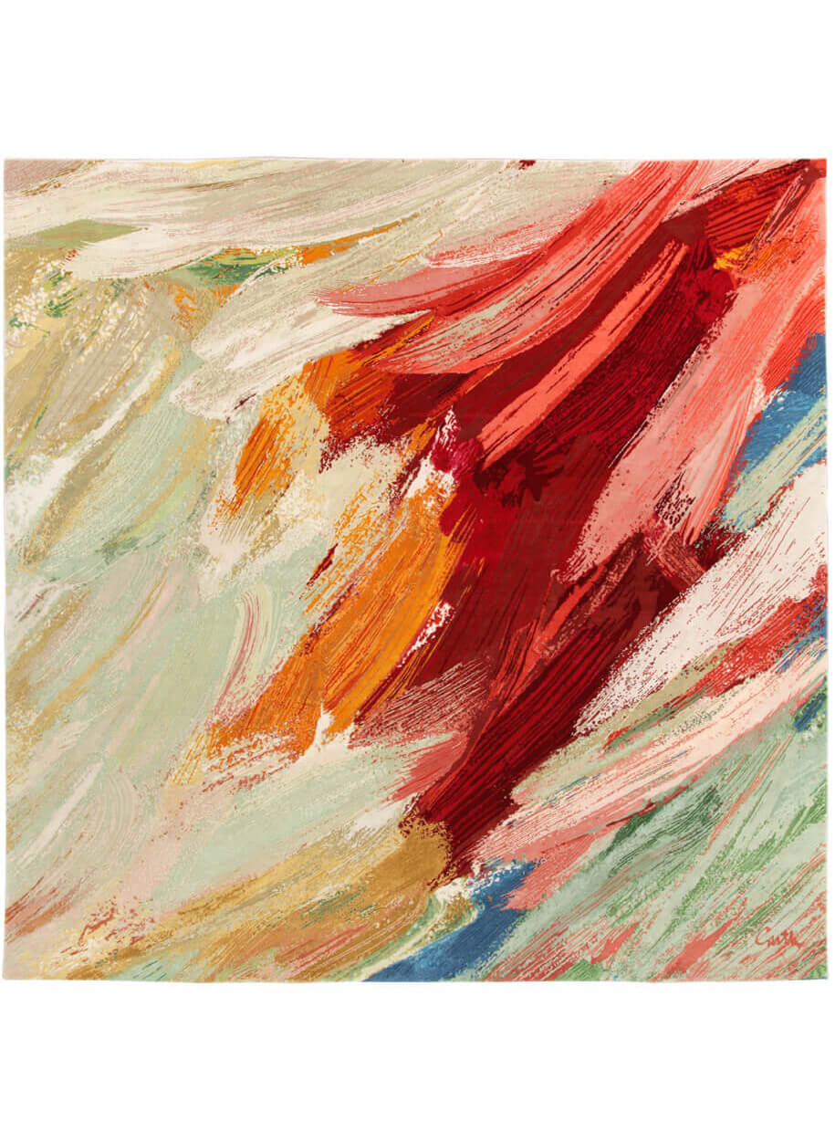 The designs for Wendell’s carpets are taken from a group of small paintings he had worked on spontaneously before he was approached to participate in Woven Forms. While he considers himself a craftsperson rather than an artist, painting is a medium that has fascinated him since early on in his career when he realized that he was working mainly in wood and really wanted to add some color to his practice. This desire for more colorful work eventually resulted in his fiberglass pieces, but it began with painting on furniture as well as two dimensional paintings on canvas. Throughout his career he has continued creating two dimensional paintings from time to time as he feels inspired, but has typically not found applications for them beyond fulfilling a personal interest in painting. This Woven Forms project presented him with a perfect opportunity to translate his paintings into functional design pieces.