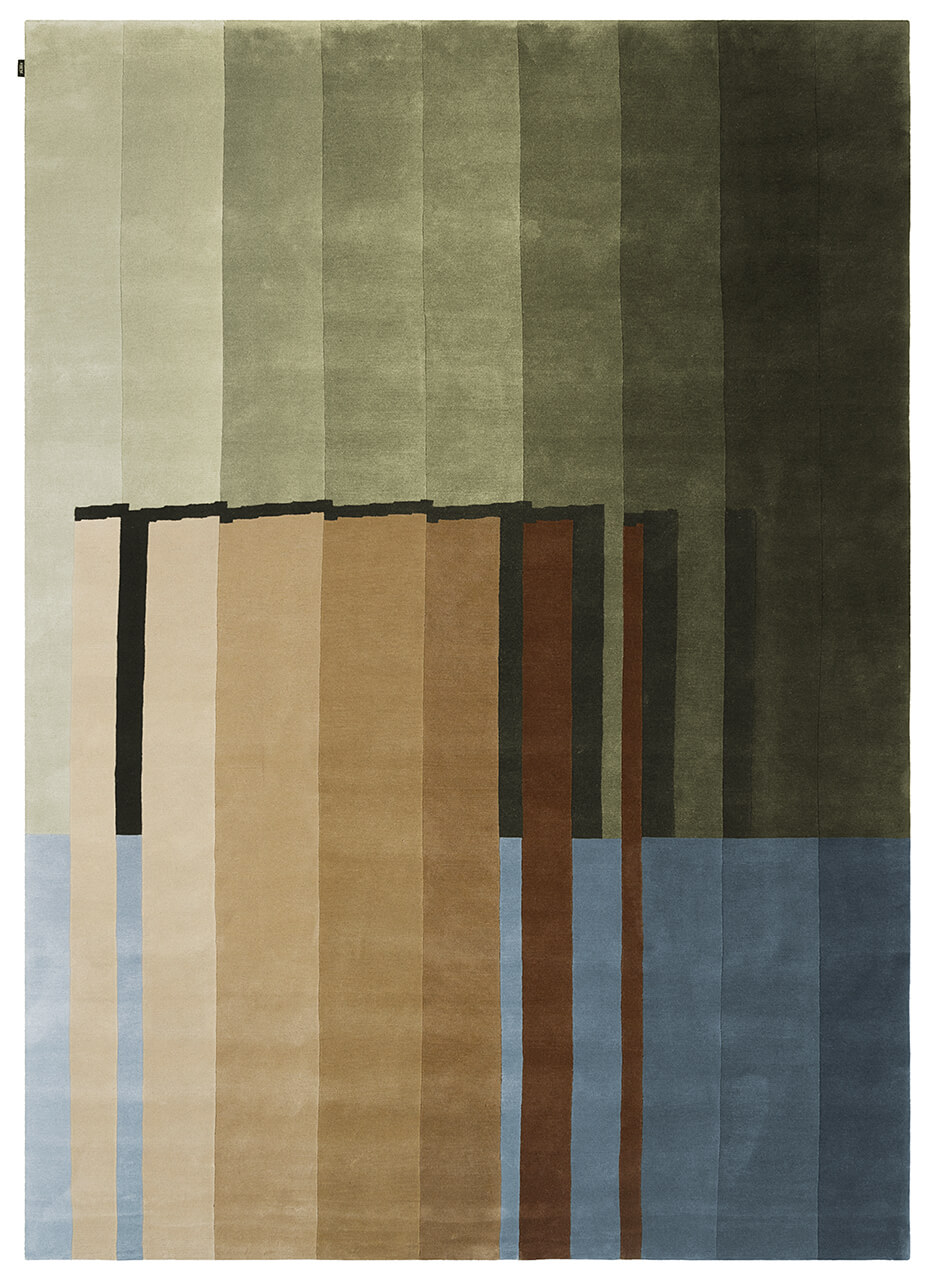 L’effetto della rifrazione attraverso il vetro ondulato è il leitmotiv della serie RD Braque, tappeti con forti richiami al mondo della progettazione architettonica. Un attento studio delle cromie e delle loro infinite declinazioni conferisce un effetto pittorico alla superficie di questi tappeti, realizzati in lana neozelandese annodata a mano.