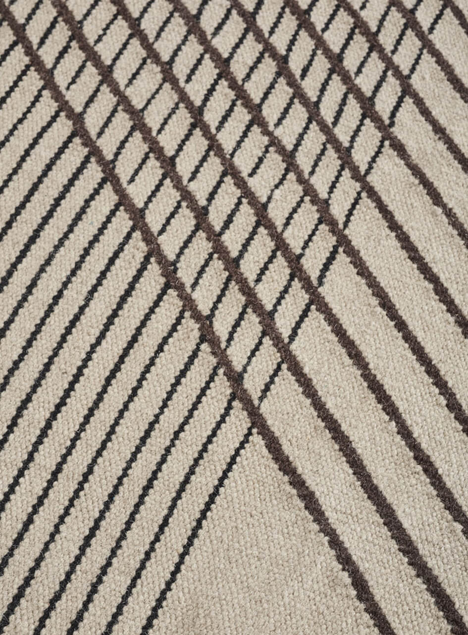 Un esagono monocromatico che ospita un incrocio di linee, Grid Kilim disegnato da Rodolfo Dordoni è un tappeto realizzato con la lavorazione kilim e ottenuto dall’intreccio di un blend di pregiate lane indiane. Adatto agli ambienti living, grazie alla forma che lo caratterizza, definisce lo spazio intorno.