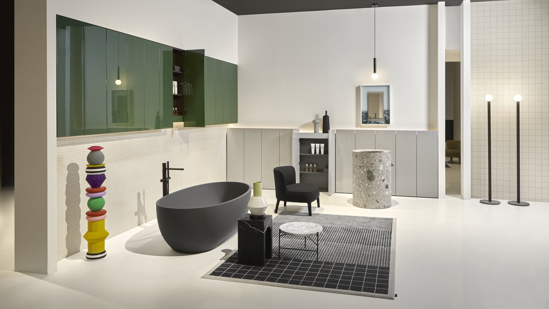 Oggi la boiserie/contenitore viene proposta nella versione con moduli a terra o sospesi in diverse larghezze, altezze e profondità tra cui la versione da 40 cm che permetterà ad Anima Liquida di esplorare anche la zona living e altri ambienti della casa. Le molteplici finiture e cromie contribuiranno a instaurare un dialogo virtuoso ed elegante, com’è nello stile di antoniolupi, con le altre superfici e texture che arredano e caratterizzano gli spazi.