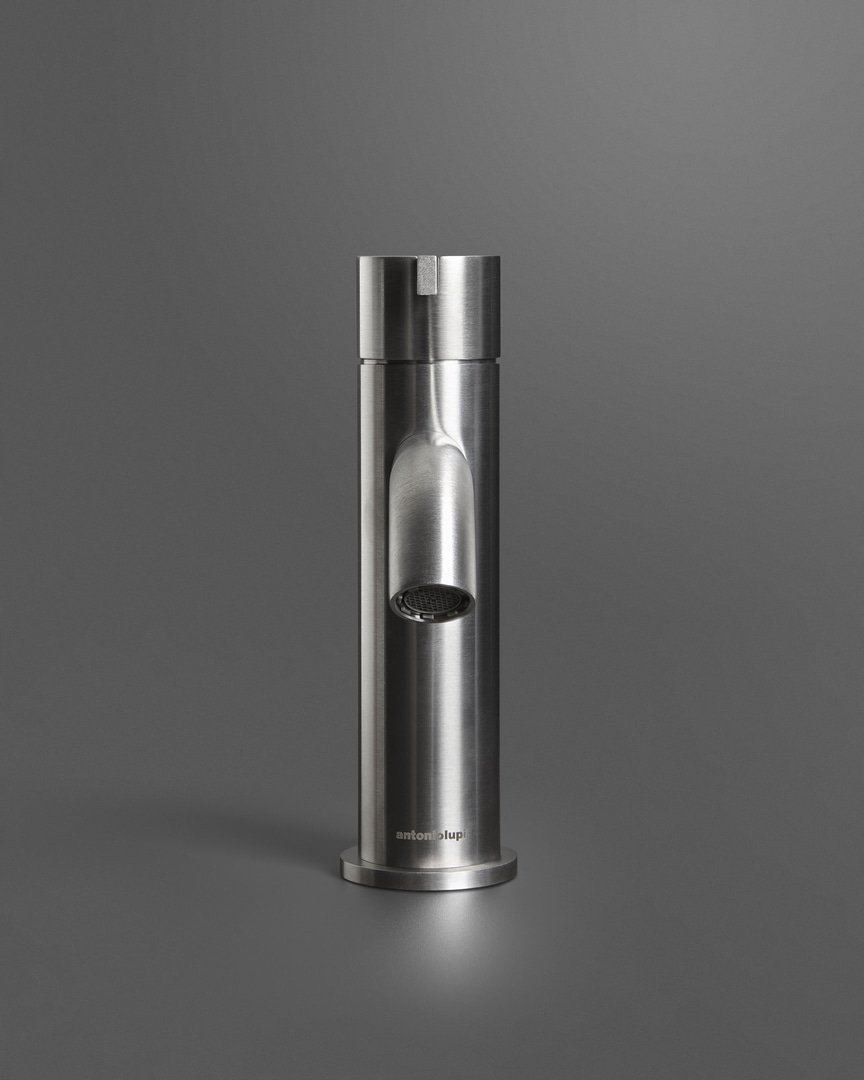 Le geometrie pure del cilindro che definiscono corpo, bocca e manopola, le linee nette e squadrate della leva che vi si innesta con un gesto dirompente, un taglio netto e deciso ma allo stesso tempo misurato e in armonia con l’immagine complessiva del miscelatore. Essentia è la collezione di rubinetteria che associa minimalismo e prestazioni, proporzioni misurate ed equilibrio dimensionale a caratteristiche di sostenibilità, igienicità e durata nel tempo. Interamente realizzata in acciaio inox, Essentia è disponibile nelle finiture satinata o lucido ma anche nella versione Laccata opaca, mentre la leva del miscelatore può essere personalizzata in tutti i colori della gamma antoniolupi.
