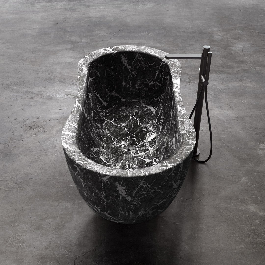 La vasca Fida si ispira alla natura. La linea esterna prende spunto dalle forme organiche dei legni dei fiumi, che conferiscono all'opera una sensazione di fluidità. Gli spigoli sono smussati e le linee morbide. L'interno della vasca è un ambiente ergonomico e accuratamente studiato per avvolgere e dar comfort a chi vi si immerge. Come una vera e propria scultura, scavata da un monolite, è disponibile in varie versioni di pietre e marmi, materiali che sottolineano l’idea di concetto legato alla natura.