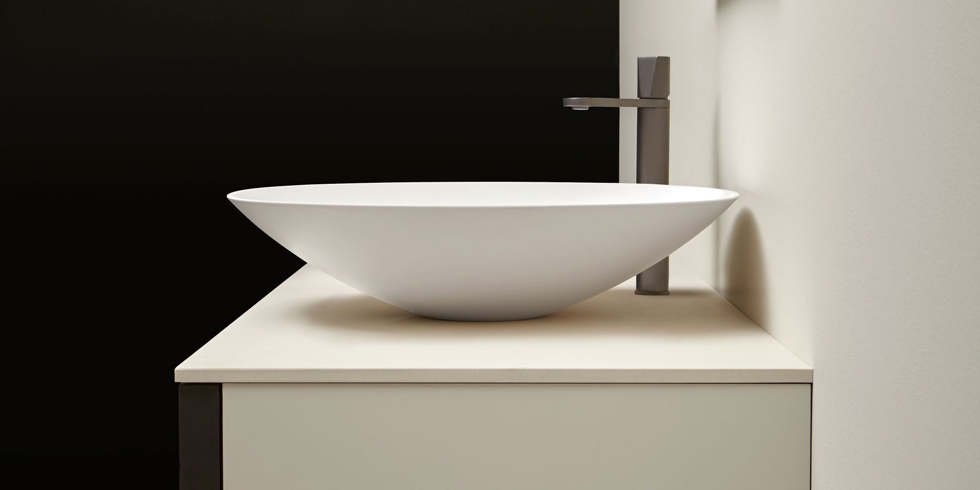 Round top mount Flumood, can be externally lacquered in all colors of our collection or Ceramilux sink complete with drain pipe fitting and open plug.