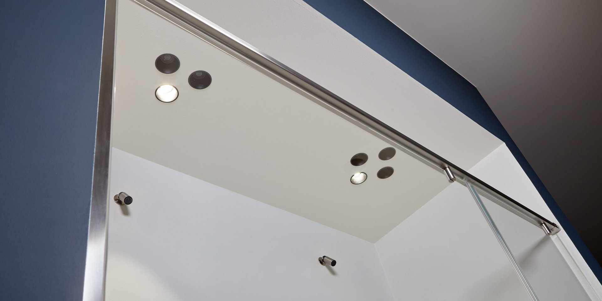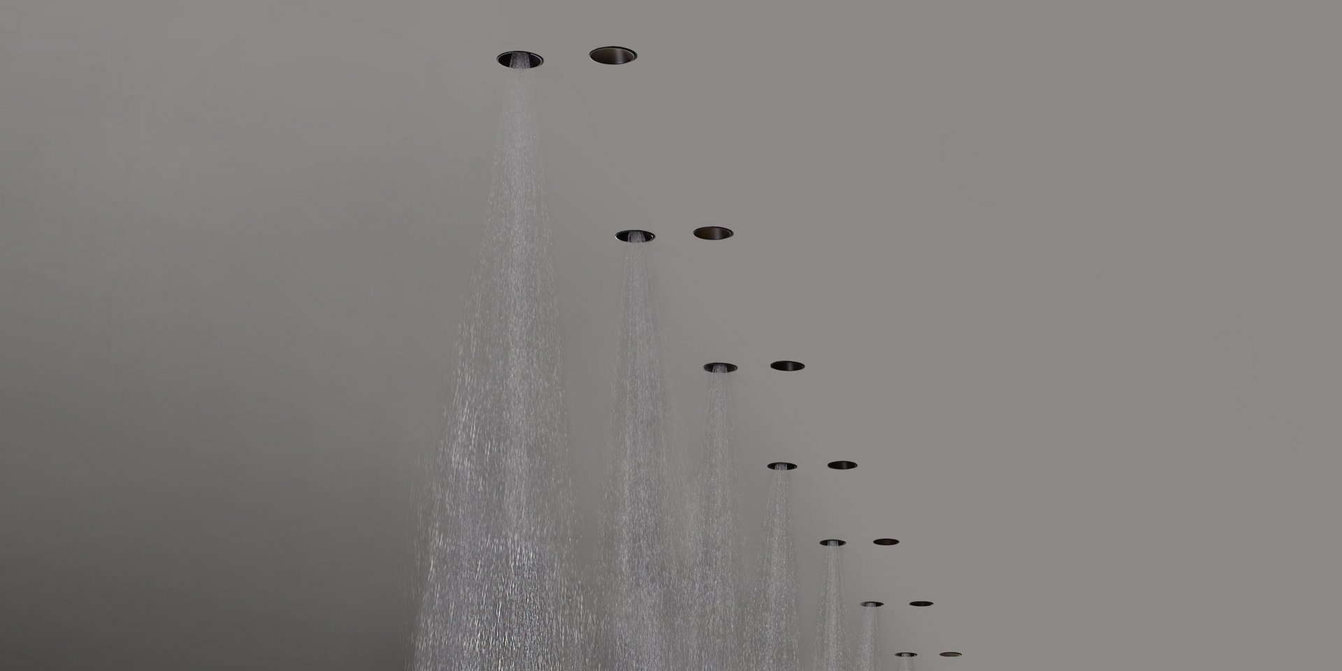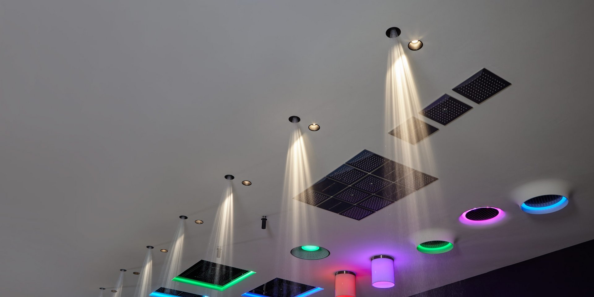 Black Delrin shower with ceiling encasing structure in black aluminum.
