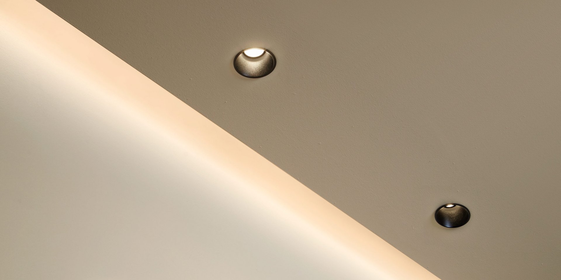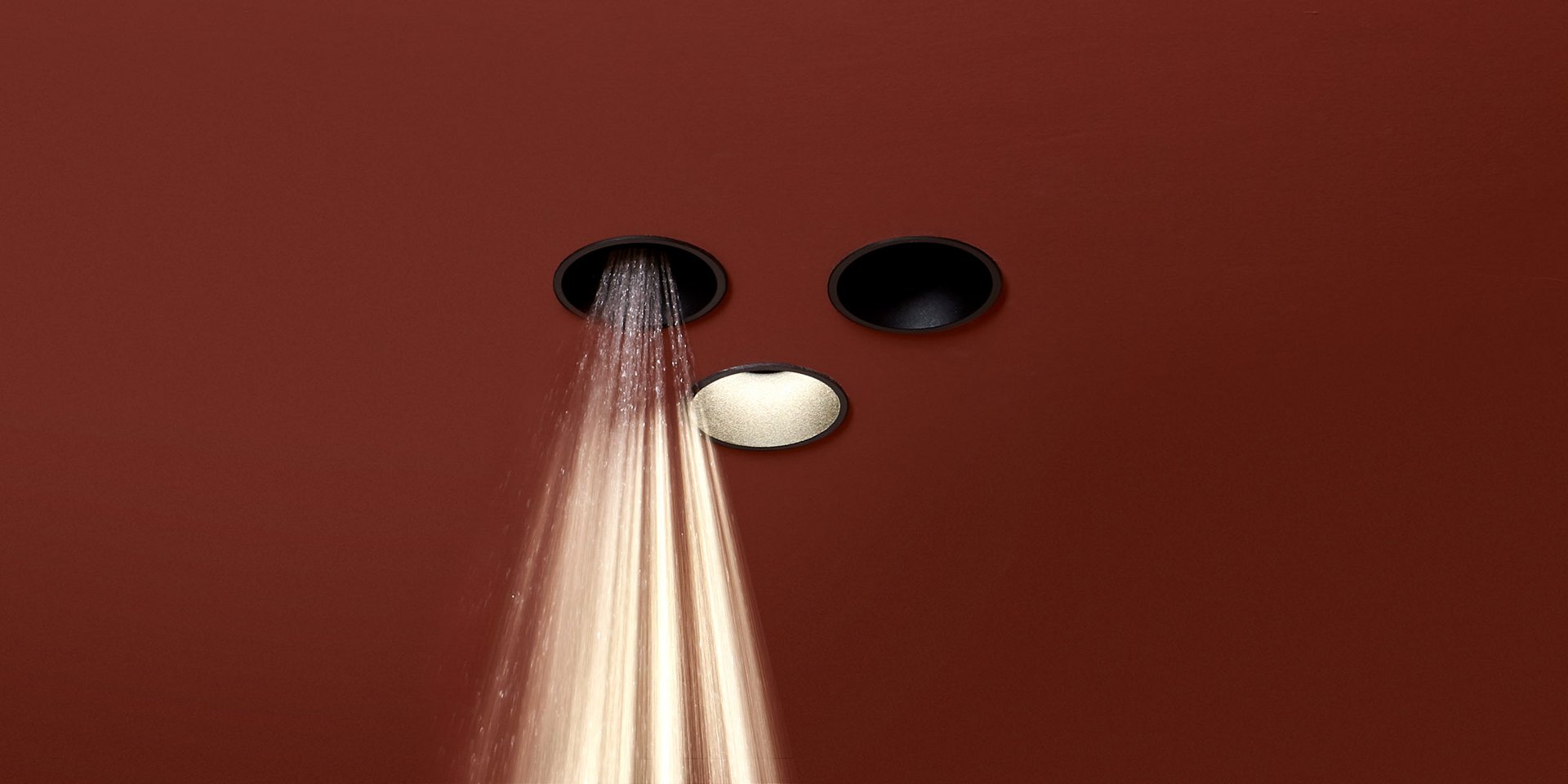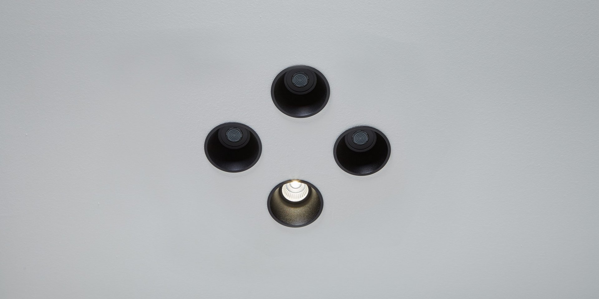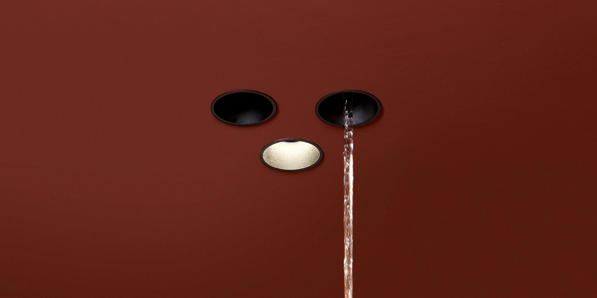 Lamp with ceiling encasing structure in black aluminum and led lighting.