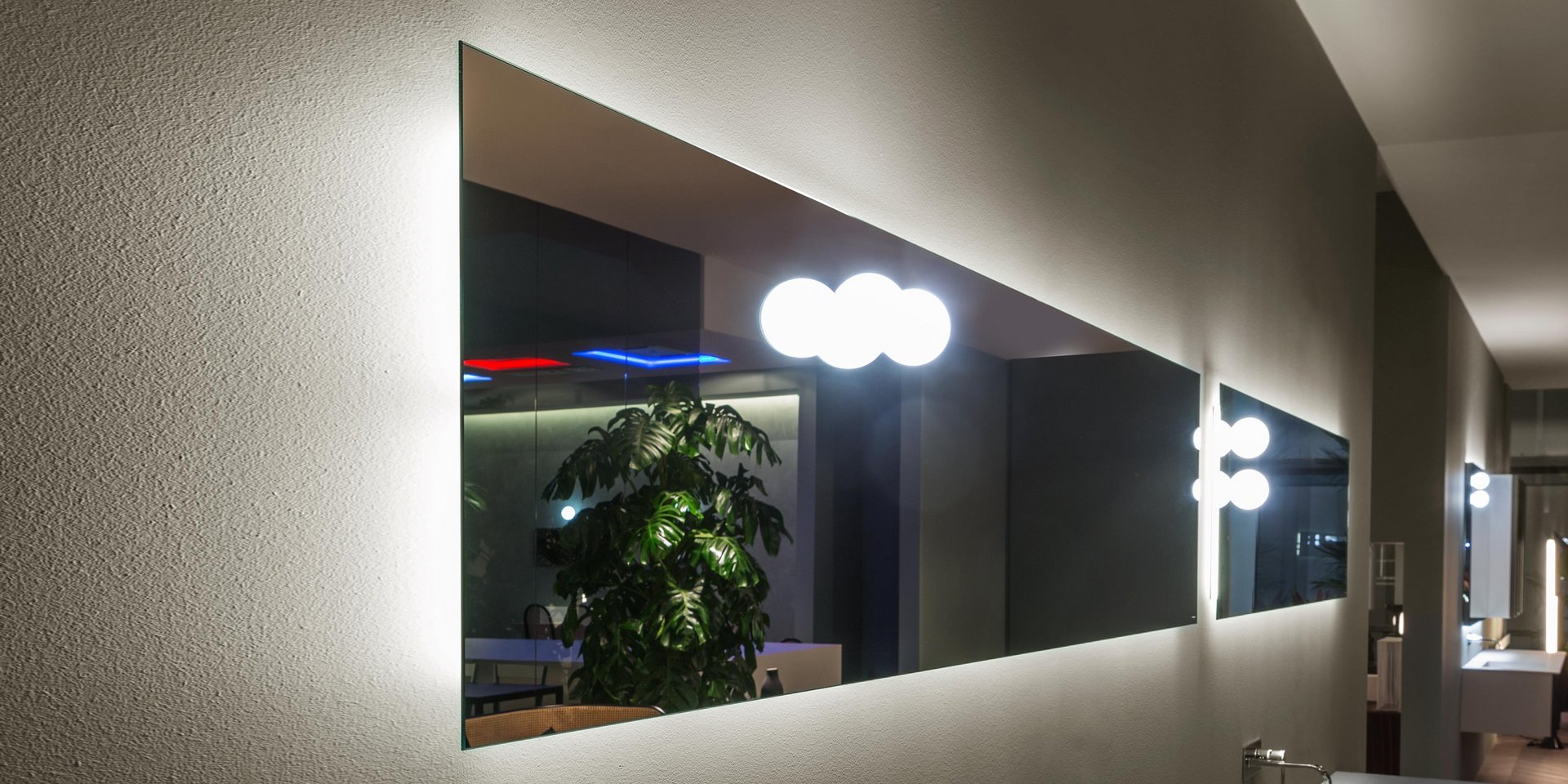 Polished edge mirror 4 mm thick with perimeter white led lighting