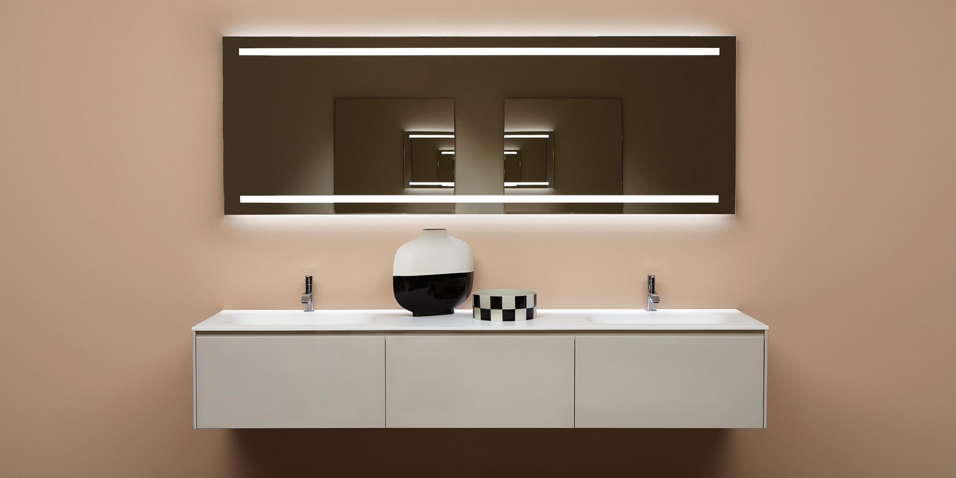 Polished edge mirror 5 mm thick with white led lighting, complete with polished stainless steel frame AISI 304