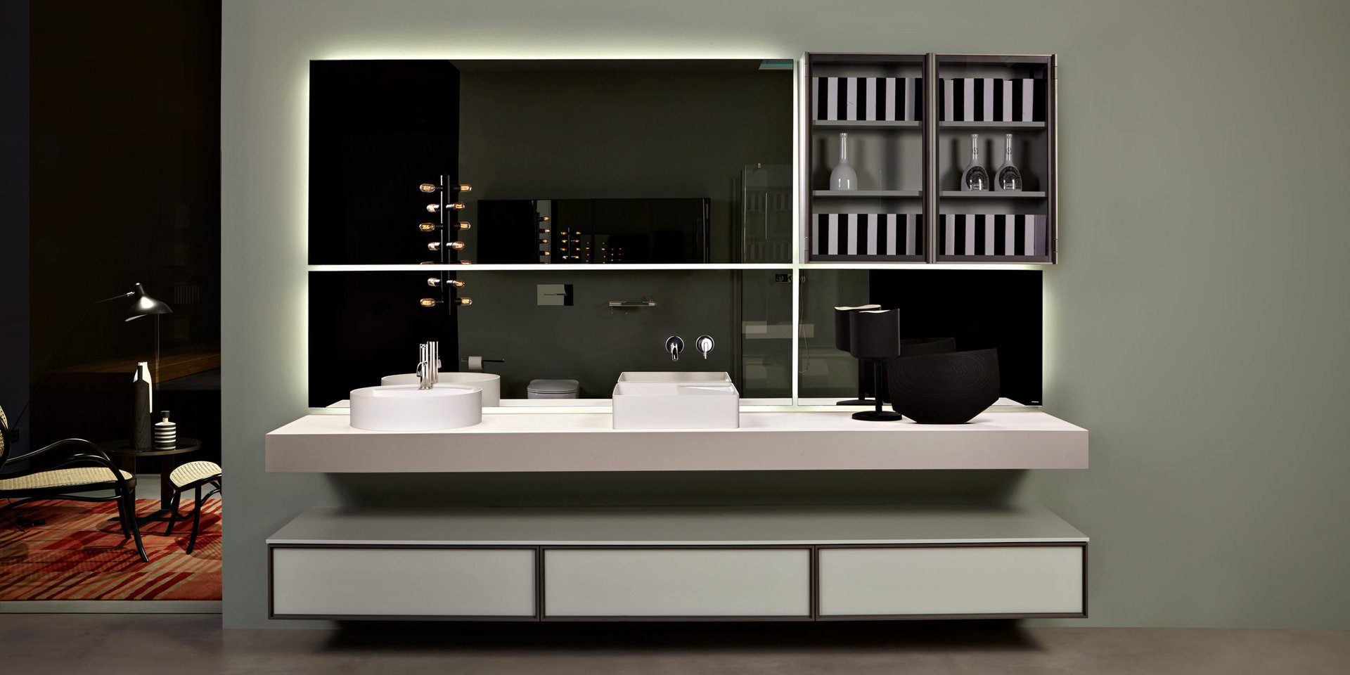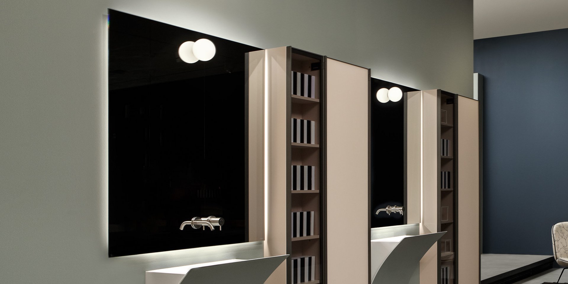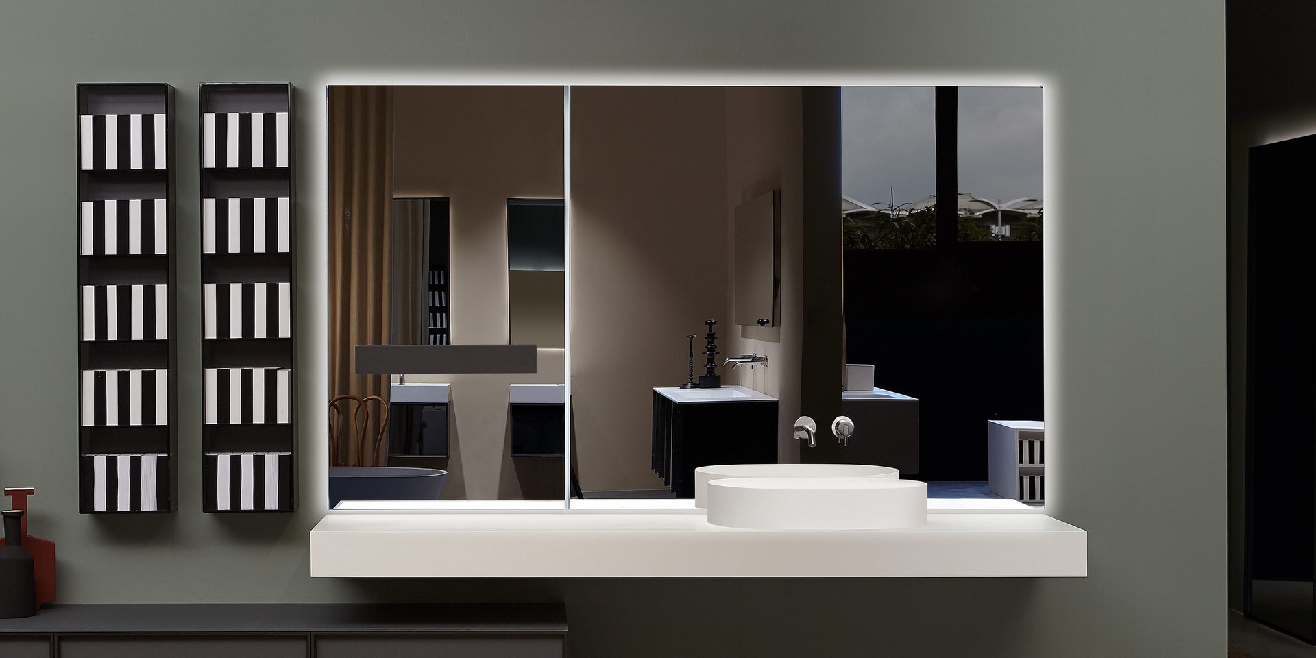 Polished edge mirror complete with frame and white led lighting prepared for concealed valves Art. SP201INSA, Art. SP201INLU.