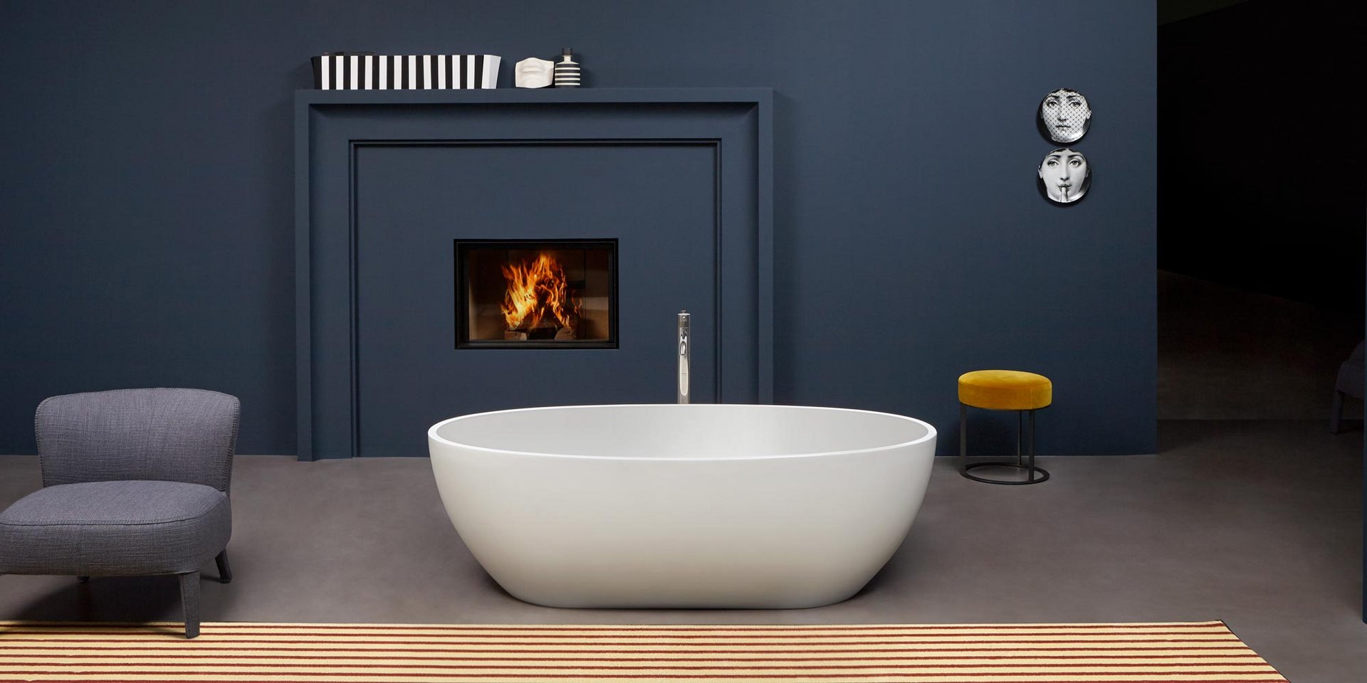 Oval Flumood bathtub, can be externally lacquered in all colors of our collection, complete with drain and pressure plug, siphon and flexible hose.