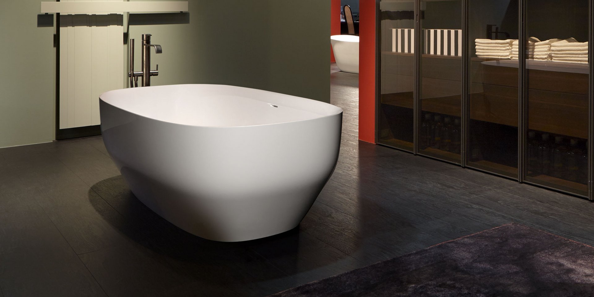Oval glossy Cristalplant bathtub comlete with drain and pressure plug, siphon and flexible hose. Can be lacquered externally.