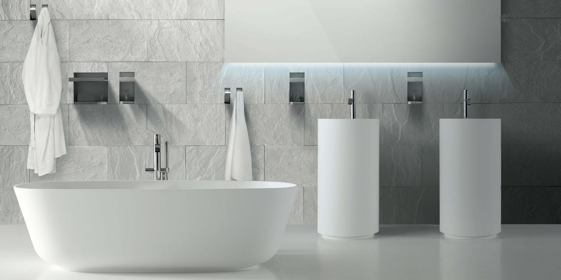 Encased wall hook in stainless steel AISI 304 with an aluminum finish.