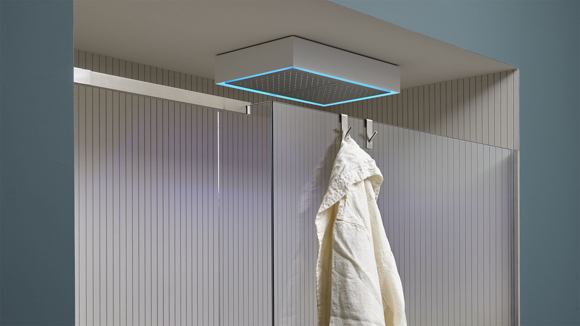 Single clothes hook in satin stainless steel AISI 304 suitable for shower enclosures.