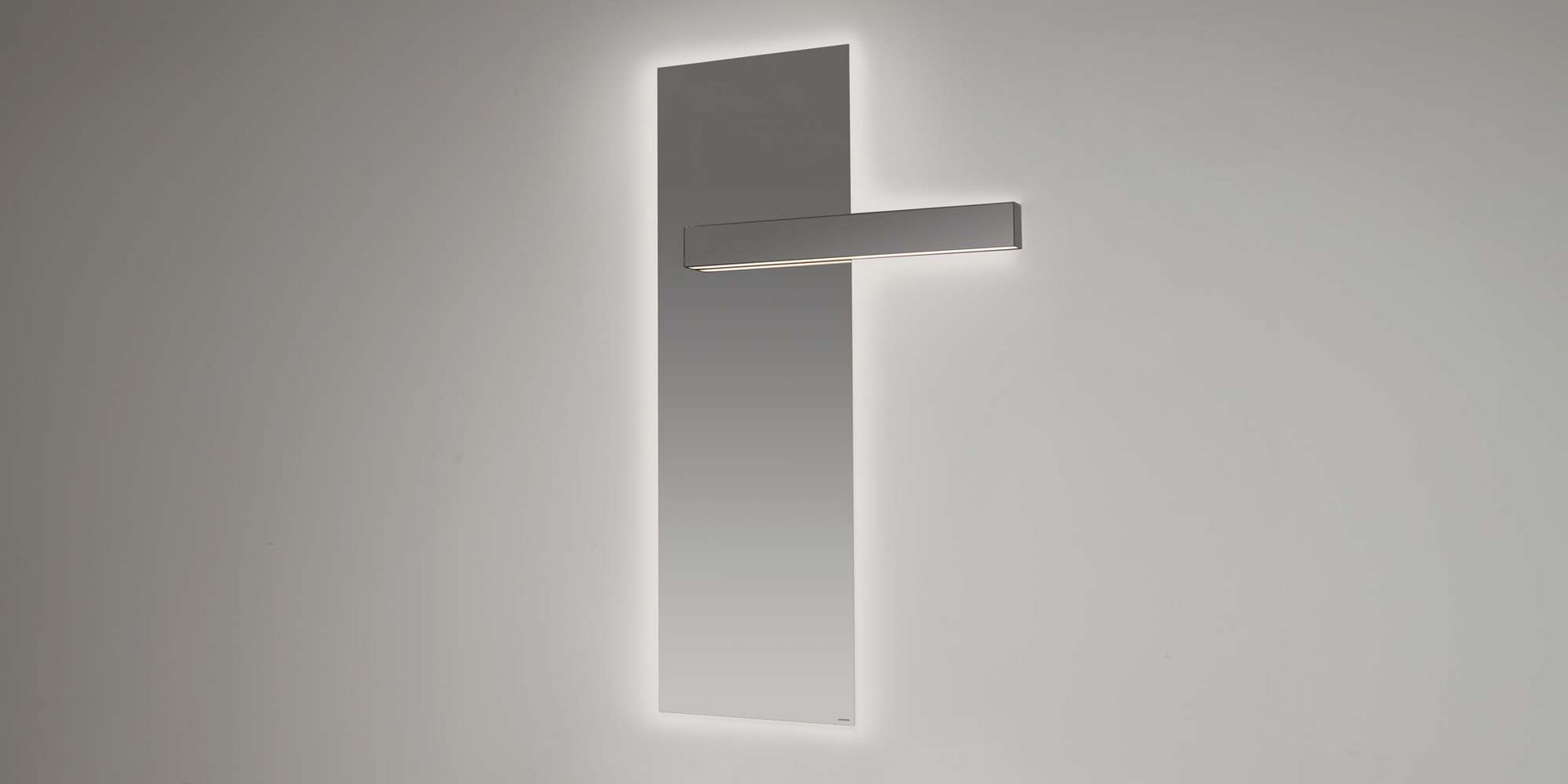 Polished edge mirror 5 mm thick with white led lighting complete with frame and lamp LUCENTE, right