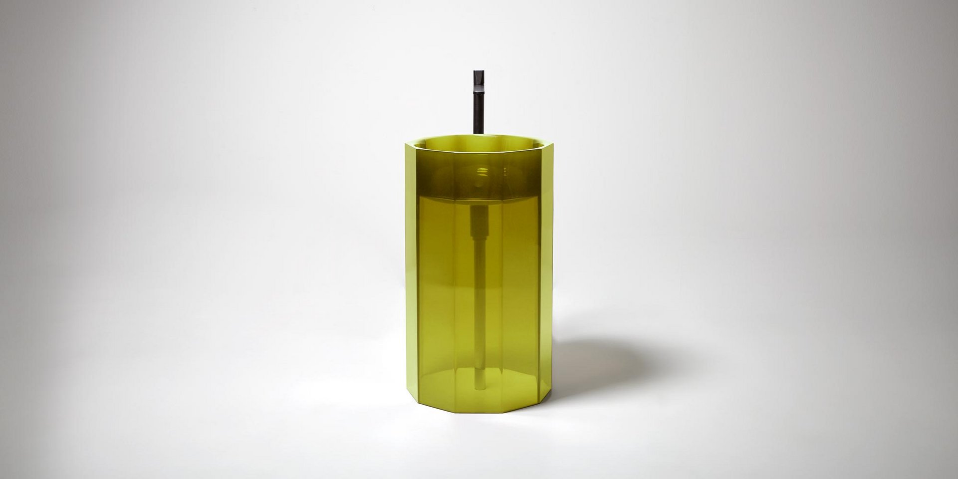 Freestanding Cristalmood sink with floor drainage, available in various colors as per our color chart, complete with pressure plug, siphon and rigid tube.