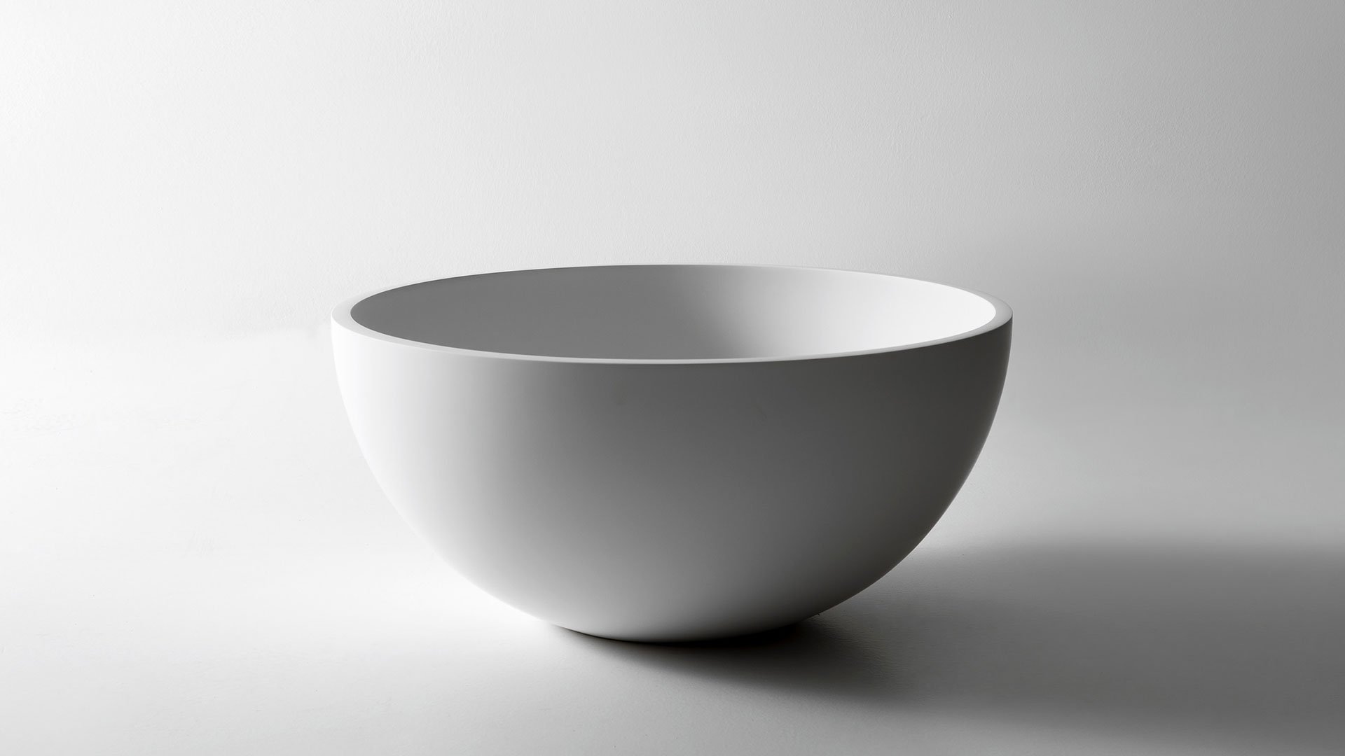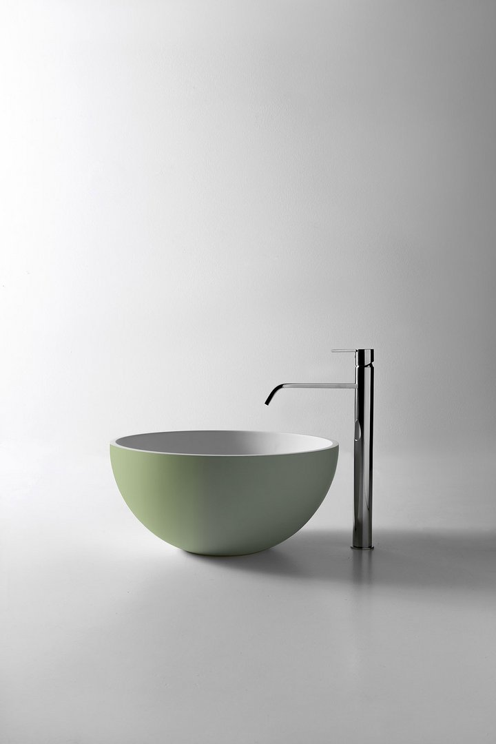 Round top mount Flumood? sink complete with drain pipe fitting and open plug, that can be lacquered externally.