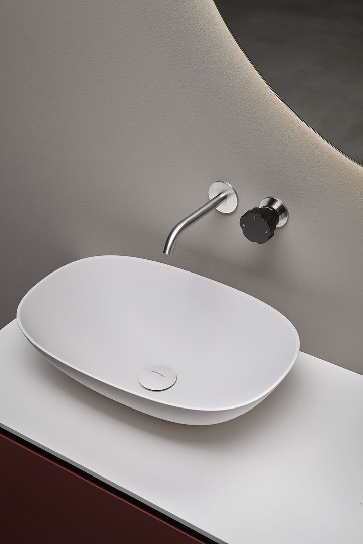 Single lever mixer with a brass lacquered handle in matt black complete with concealed valve