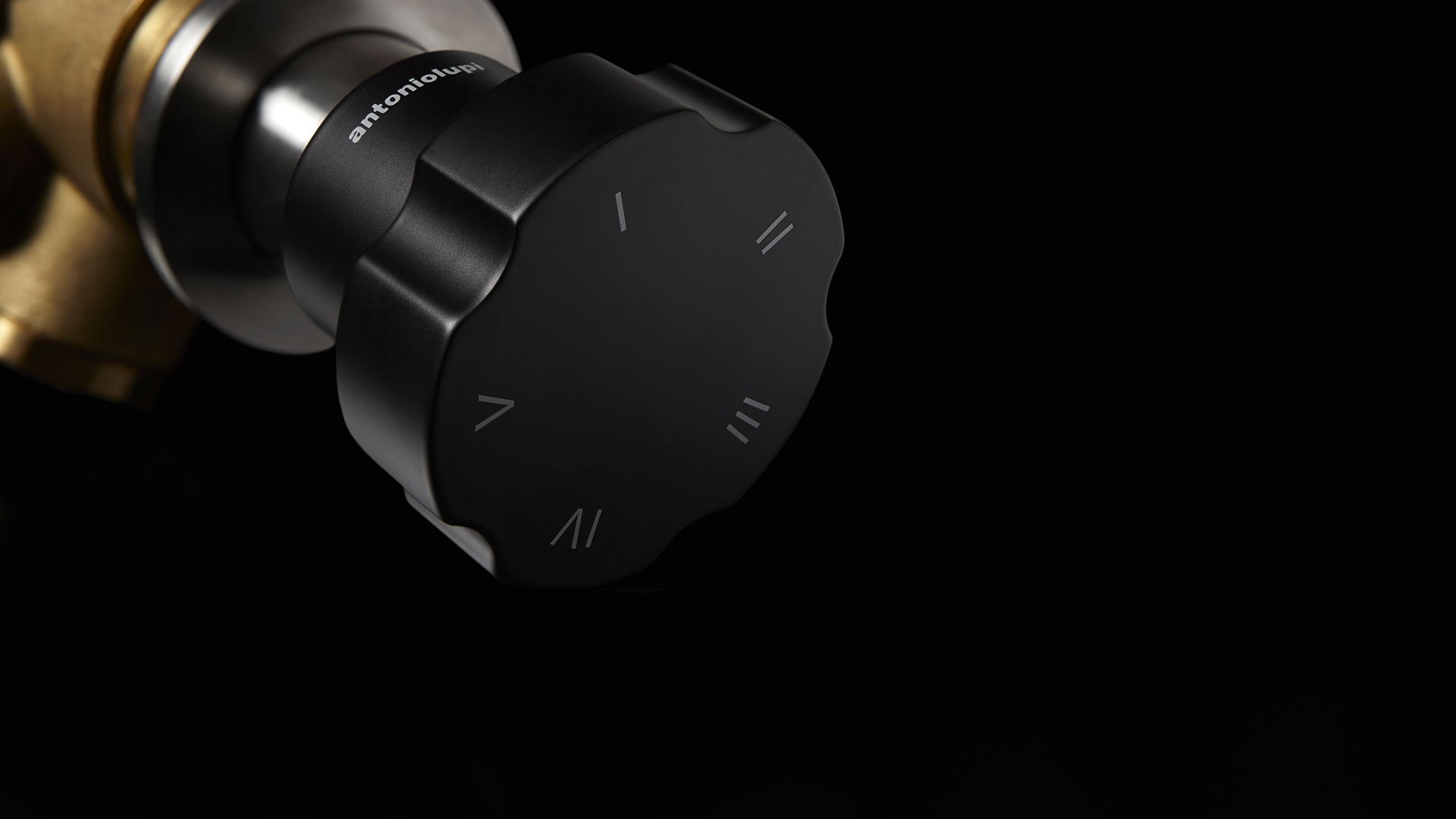 Encased 2, 3, 4 or 5 way diverter, with a brass lacquered handle in matt black complete with concealed valve