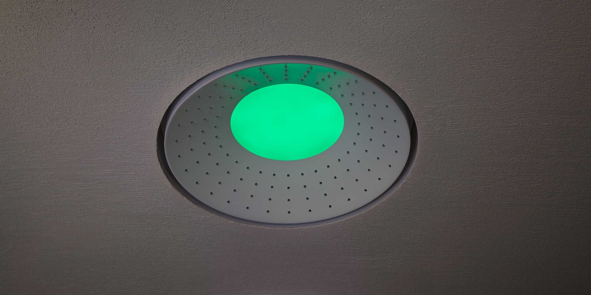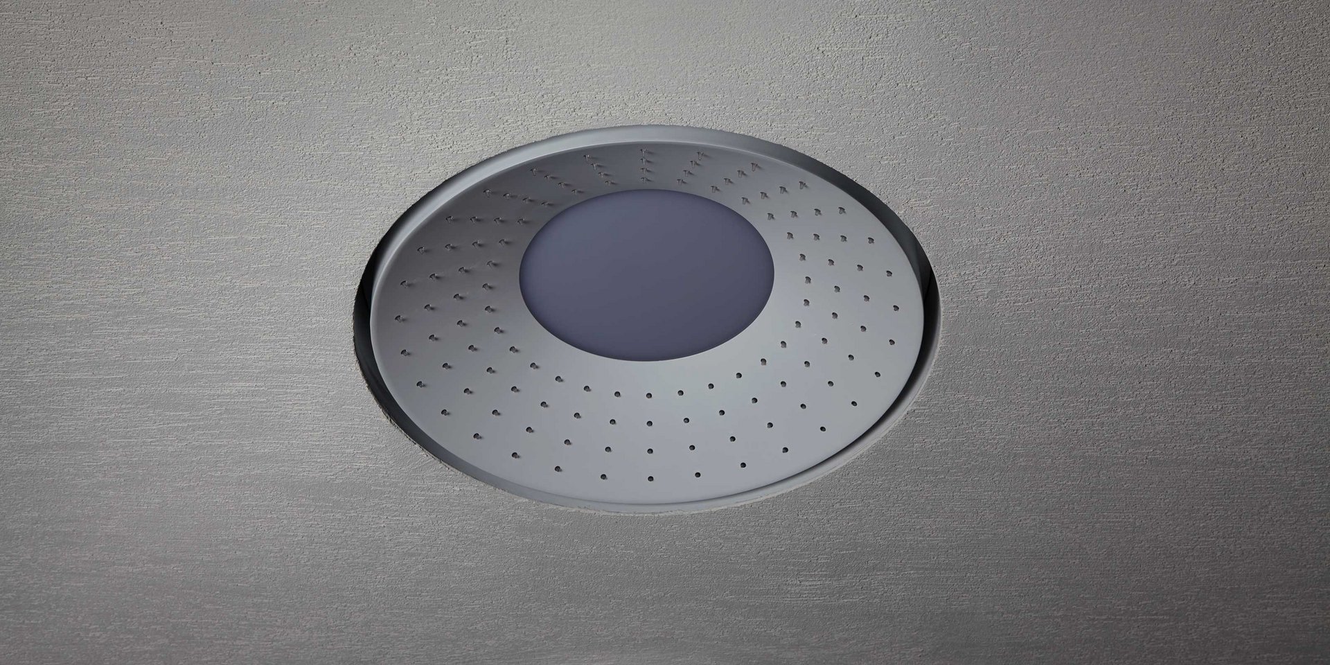 Ceiling encasing structure in AISI 304 lacquered white with LED RGB lighting complete with waterproof remote control.