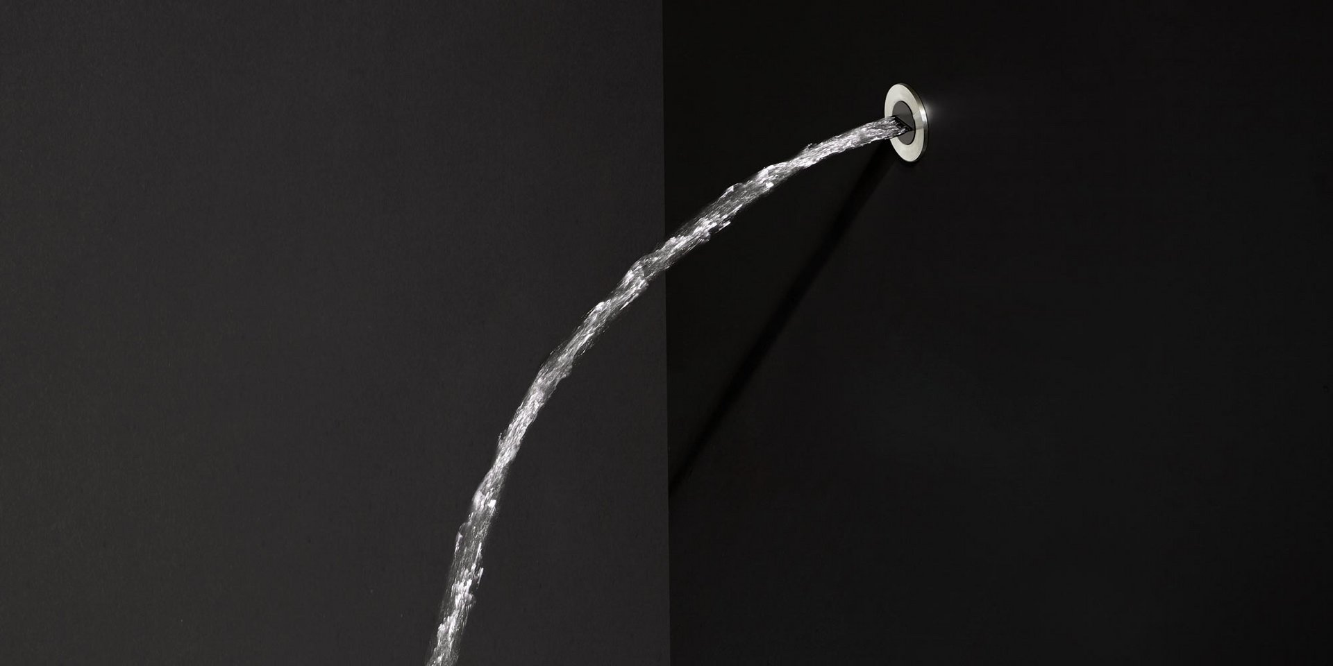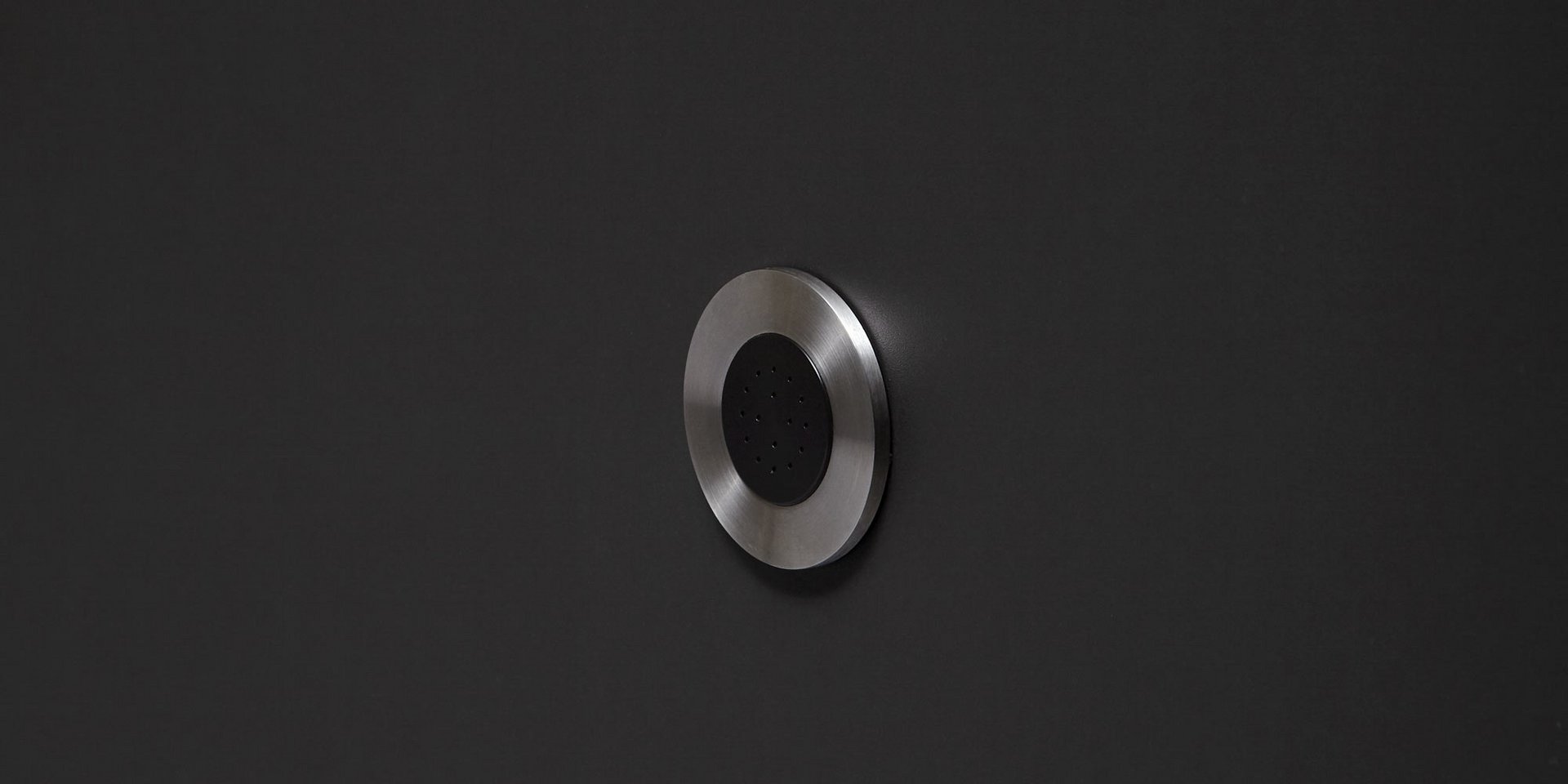 Side rain jet to be encased. Satin stainless steel AISI 304 and black Delrin