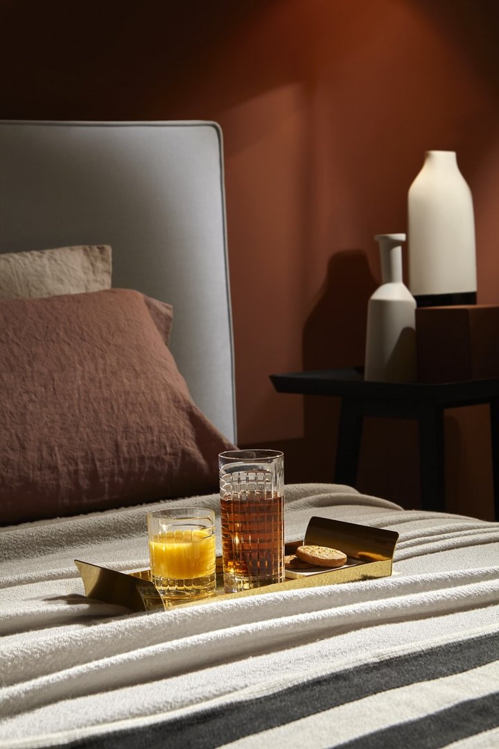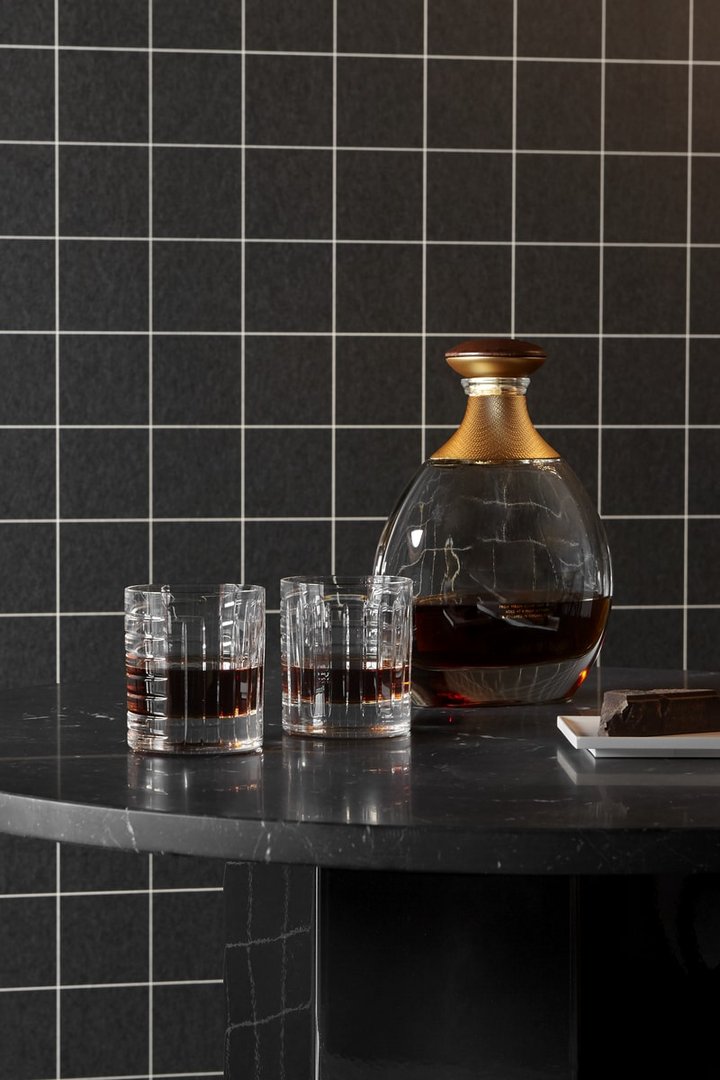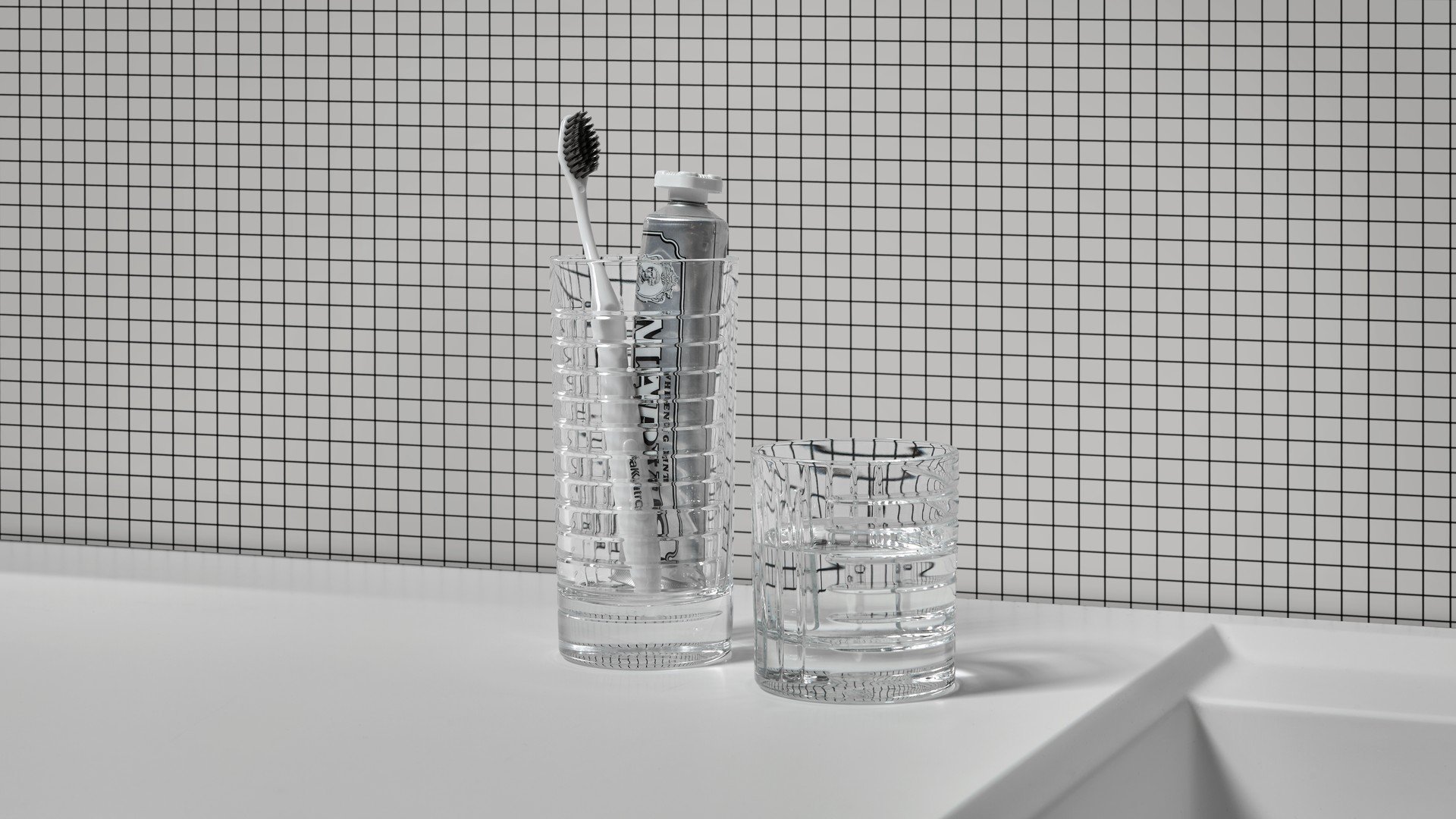 水晶的絕對性,姿態(tài)的完美,標志的一致性,光線的不可預測性。兩只不同高度的玻璃杯,可用洗碗機清洗,可在浴室用作牙刷架,也可用于廚房或客廳。水晶的垂直標志和復雜的手工雕刻允許痕跡深度的差異,這將決定體積的感知。像光一樣,根據(jù)玻璃的不同位置,倍增它的形象,在不斷的進化中確定一個最終的狀態(tài)。