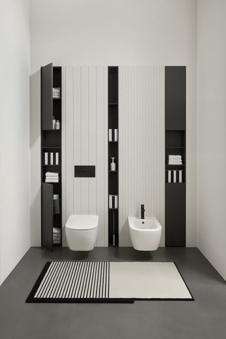 從表面到三維,在墻壁顏色和背景顏色之間形成色彩對(duì)比。這些解決方案將美學(xué)和功能結(jié)合在一起,讓您可以存儲(chǔ)有用的物品,而不會(huì)從環(huán)境中竊取寶貴的厘米,也不會(huì)從墻上突出,阻礙手勢(shì)和調(diào)節(jié)路徑。兩個(gè)珍貴的隔間,兩個(gè)服務(wù)元素被巧妙地放置在空間內(nèi),完善了配件系列,讓您體驗(yàn)最舒適的浴室環(huán)境。