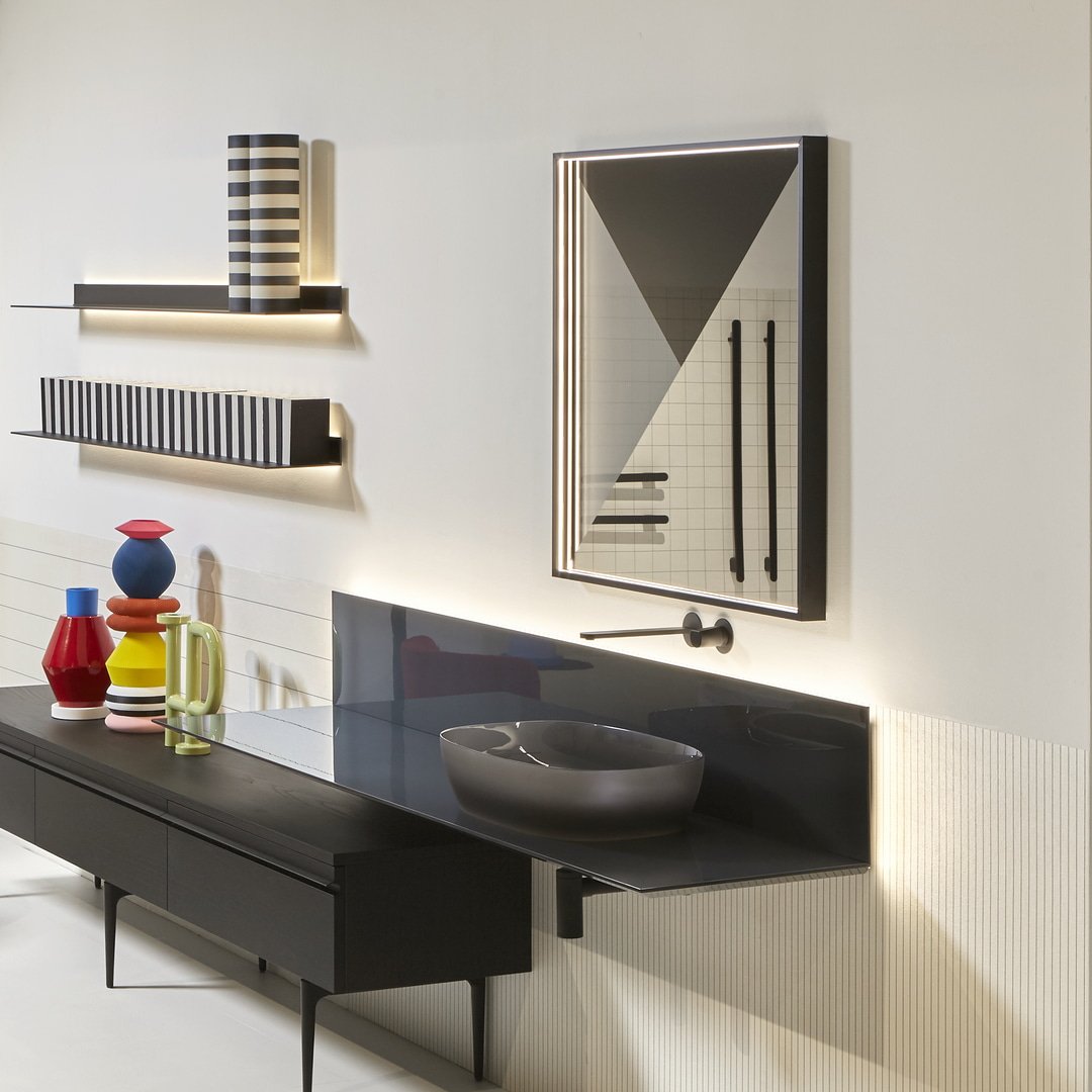 METRICA 具有通過三角形疊加獲得的節(jié)奏結(jié)構(gòu)。黑色和煙色玻璃與鏡面交替,營(yíng)造出詩(shī)意的視覺構(gòu)圖。METRICA 的結(jié)構(gòu)將節(jié)奏方面延伸到承載它的建筑結(jié)構(gòu),產(chǎn)生了正式的作曲對(duì)話。