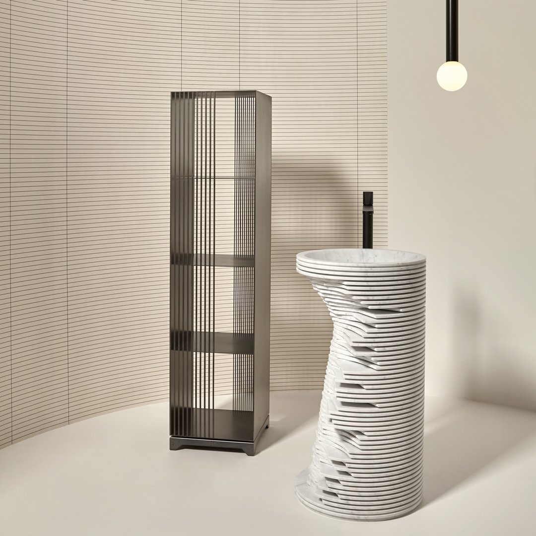后者具有雙重功能。第一,嚴格審美,設(shè)計立體元素的構(gòu)圖和分解。第二個是功能性的,對存儲在內(nèi)部的物品進行界定和容納,這些物品保持可見,參與項目的開發(fā),將其從一個理想的計劃變成現(xiàn)代和復(fù)雜日常生活的真實維度。