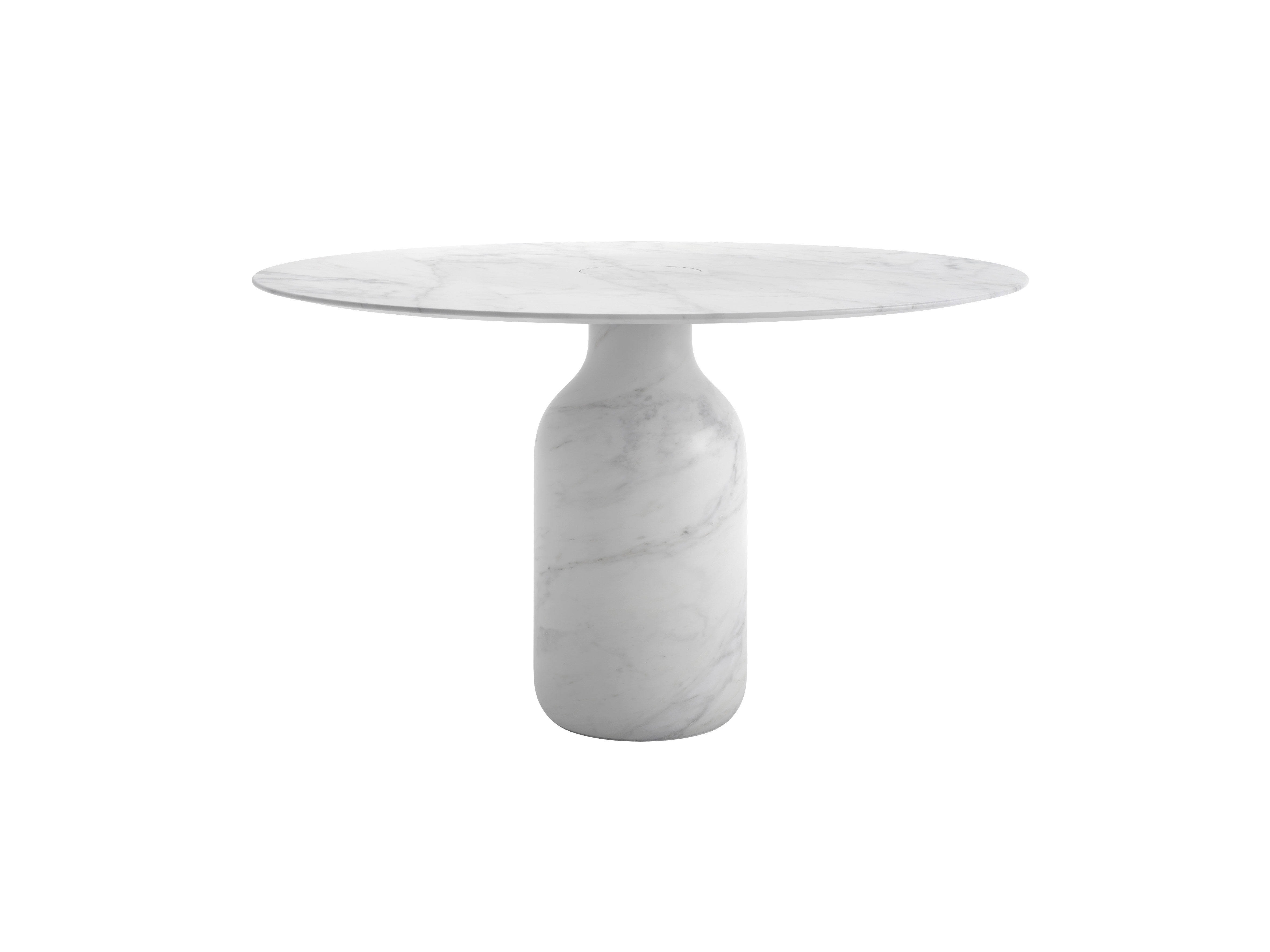 The Bottle table, originally designed by British designers Edward Barber and Jay Osgerby in 2007 and winner of the prestigious Wallpaper* Design Award in the same year, gets back into the Cappellini catalogue in the version with a round tabletop, slightly tapered to create an effect of extreme visual lightness. The base clearly recalls the shape of a bottle, hence the name of the product.