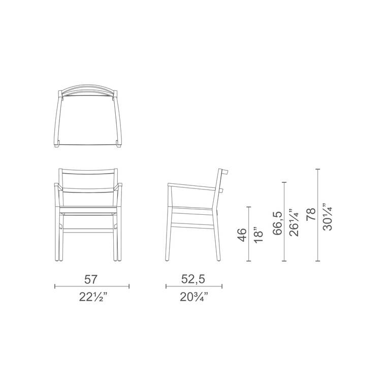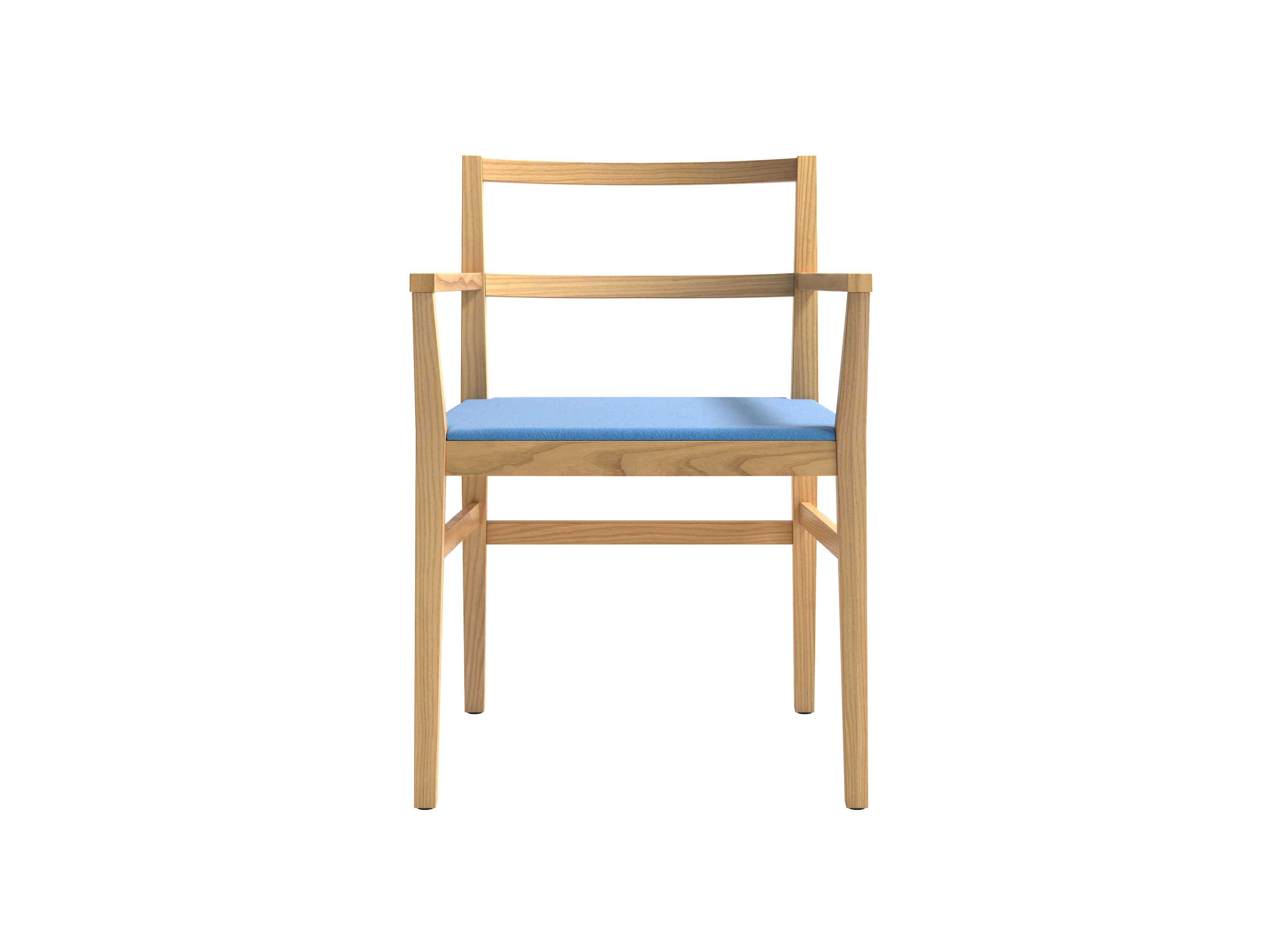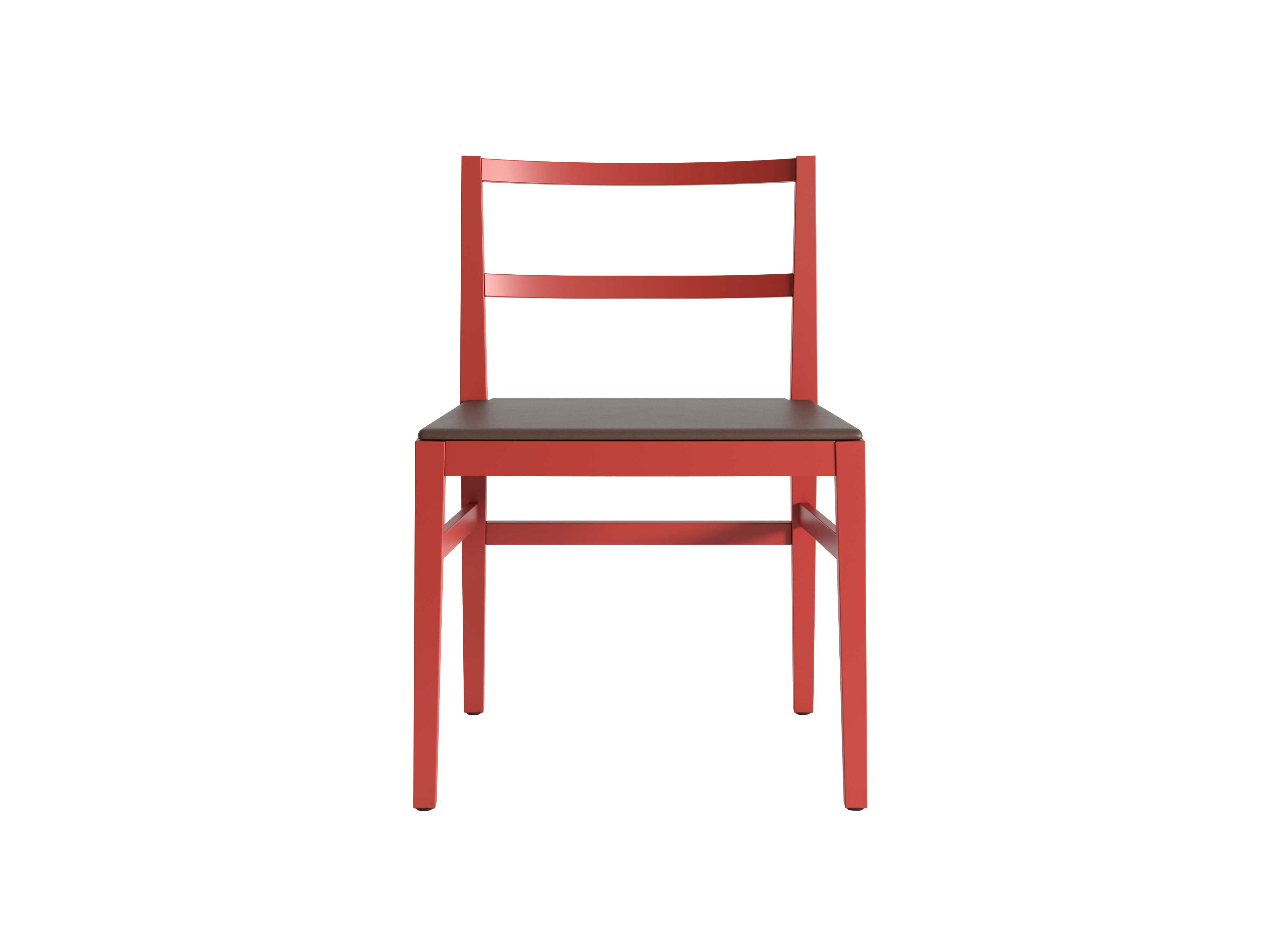 The Classica chair, available with or without armrests, is made of solid cherry or ash wood in oak-stained, black-stained or red-stained finish; the seat features a fixed upholstery in a selection of fabrics and leathers from the collection.