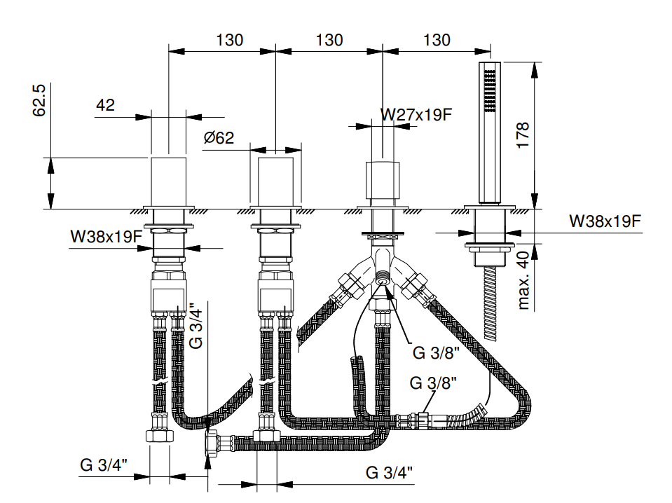 注意:水龍頭把手需要單獨預定,請參看“開關把手”部分