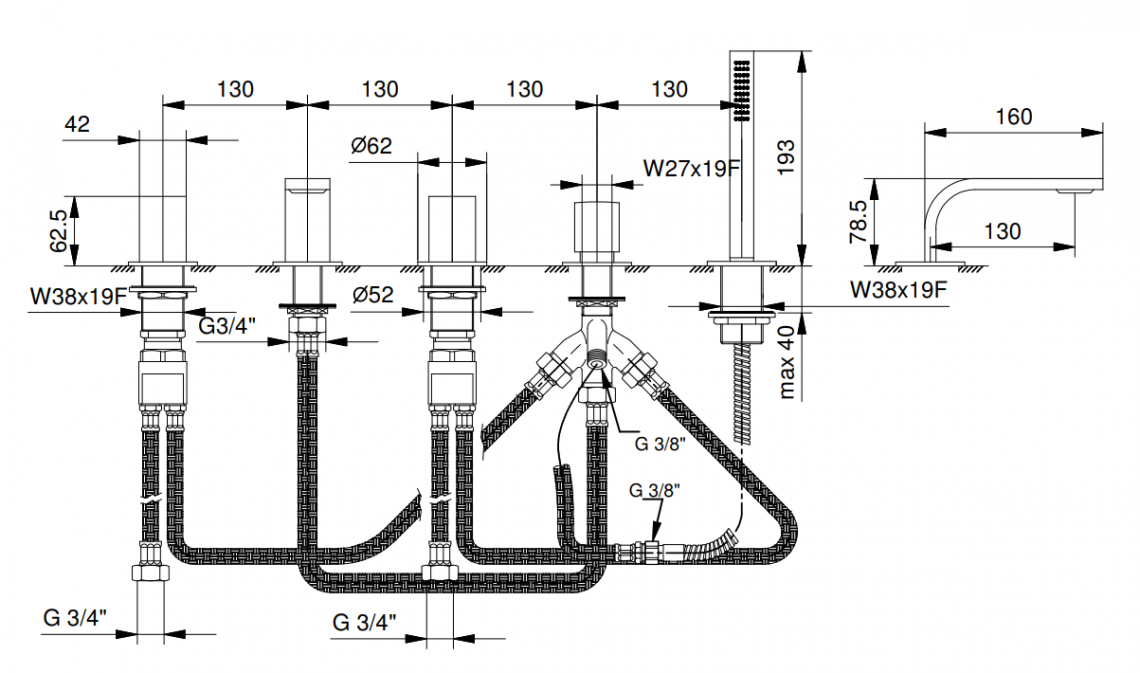 缸邊式浴缸龍頭組 - VENEZIA IN