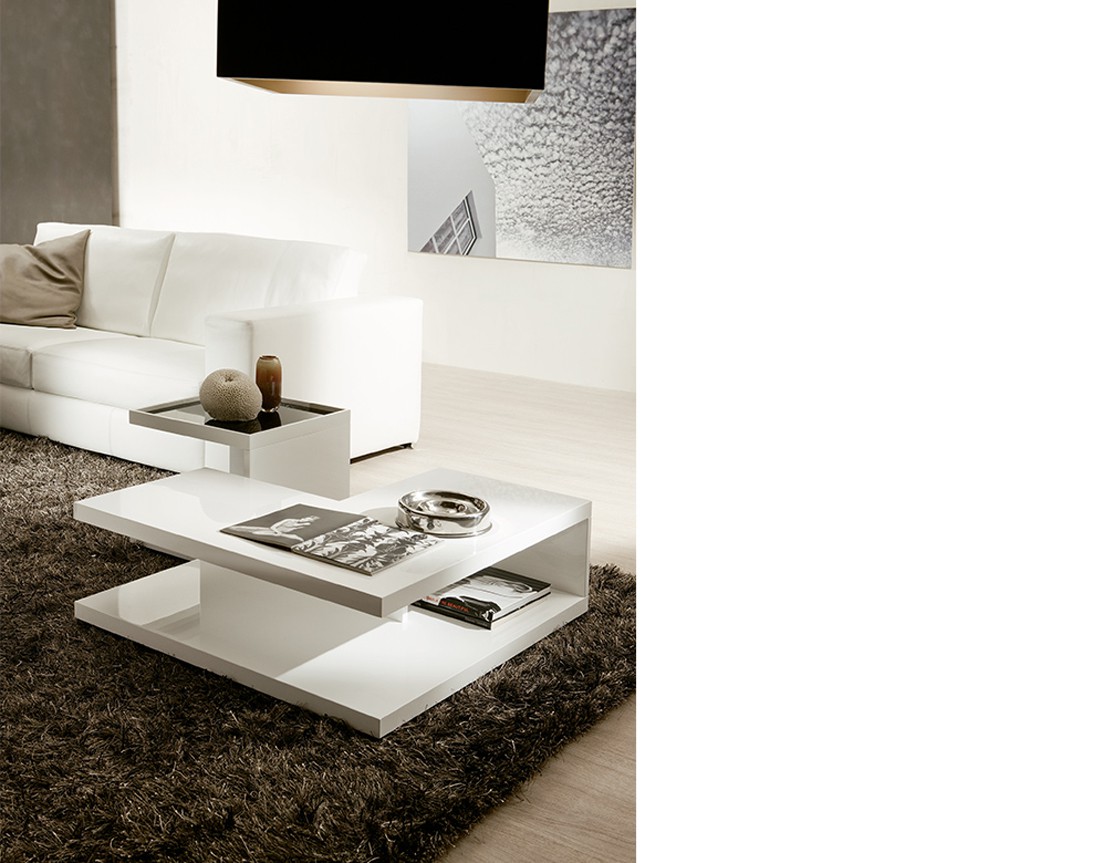 Tavolino con piani laccati. Tavolino di servizio con top in vetro verniciato (bianco, nero o moka) e ripiano laccato. Finiture disponibili: Laccato opaco poro chiuso ( L1 bianco, L19 madreperla, L3 cappuccino, L5 grigio fumo, L2 nero, L4 rosso, L40 beige microgoffrato, L41 ecrù microgoffrato, L42 fango microgoffrato ), Laccato brillante ( L6 bianco, L9 madreperla, L10 cappuccino, L11 grigio fumo, L8 nero, L7 rosso ).