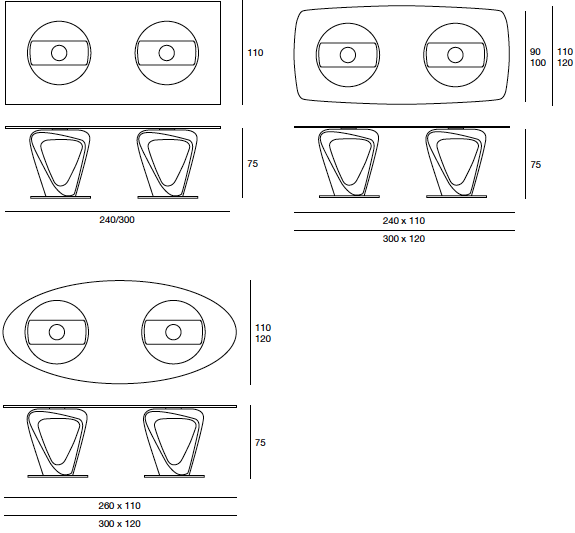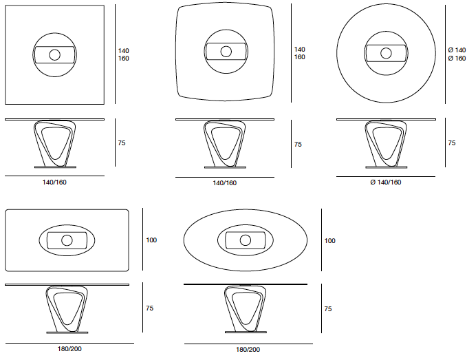 Il tavolo Mobius ha una struttura insolita e piacevole, il design lascia libertà all’immaginazione: è dinamico, è rotondo, quadrato, rettangolare, ovale ed a botte.